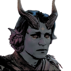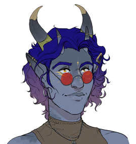 ㅤdistinguishing features.ㅤ ㅤgolden tattoos constellation patterns across his upper face and under his eyes / missing half his right ear.ㅤdetailed description.ㅤ standing much taller than many other of his apparent kin, dull gray nearly blue in some light skin is highlighted with golden tattoos, not too dissimilar to Dalish markings, albeit looking far more obvious than the common subtle kinds. his horns, which are uncharacteristic to elves, are smaller than those of qunari. his clothing was at one time nice, but now is worn and faded, and a handmade leather corset tight around his long torso.ㅤWhat is he up to in Thedas?.ㅤplease ignore the image it is a placeholder